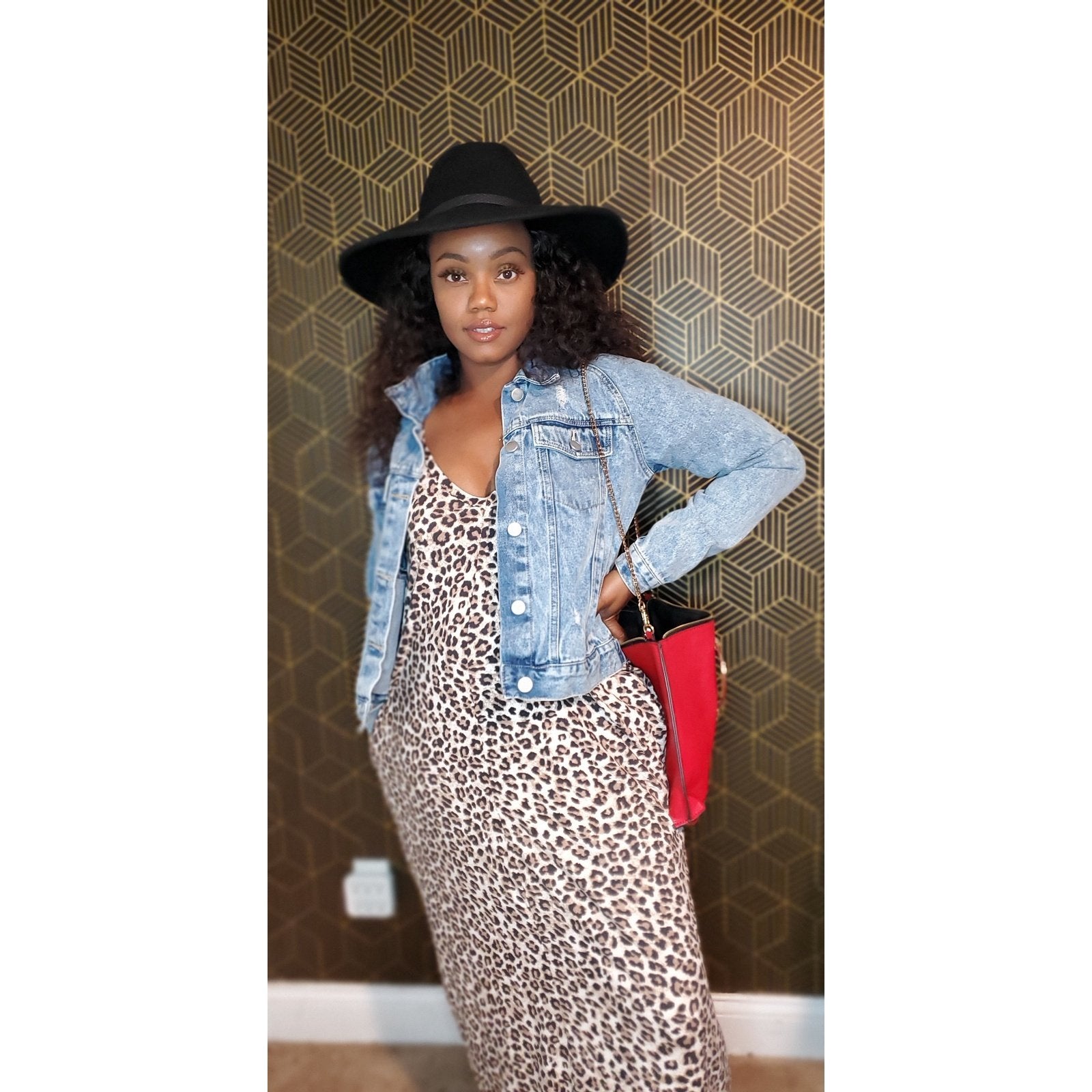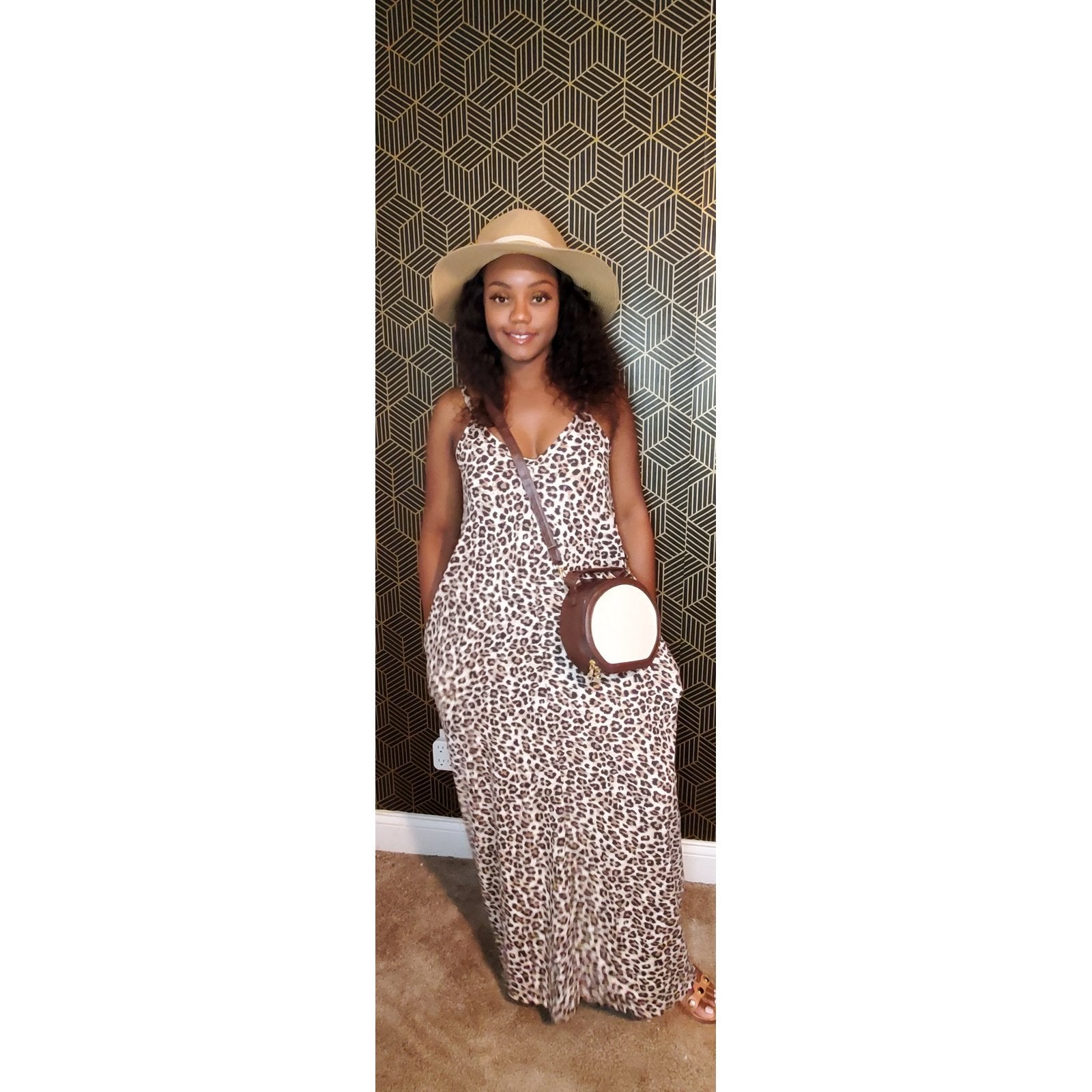 BRUSHED MICROFIBER LEOPARD V-NECK CAMI MAXI DRESS WITH SIDE POCKETS AND ADJUSTABLE STRAPS